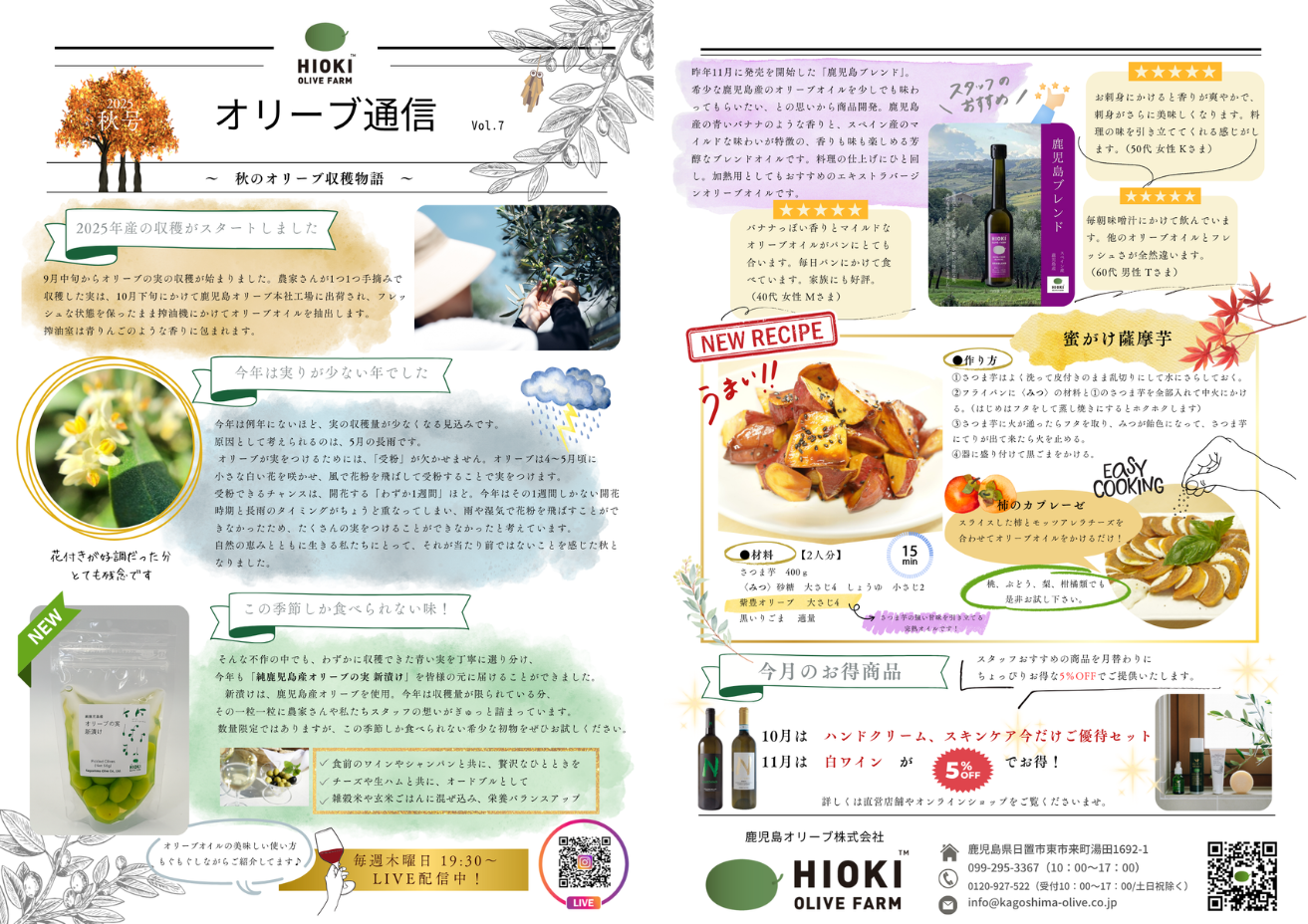 春夏秋冬の年4回発行しております「オリーブ通信」を皆さんにお届け。